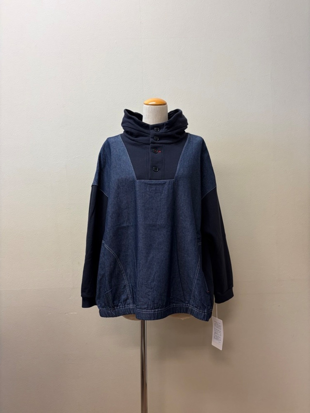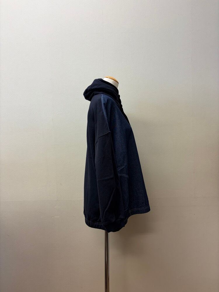フロントに配された存在感のあるデニム生地と、ふんわりと暖かいスウェット素材を組み合わせた一着。カットソー部分は「裏起毛」仕様になっており、寒い季節でも非常に暖かく、ソフトな肌触りで包み込んでくれます。