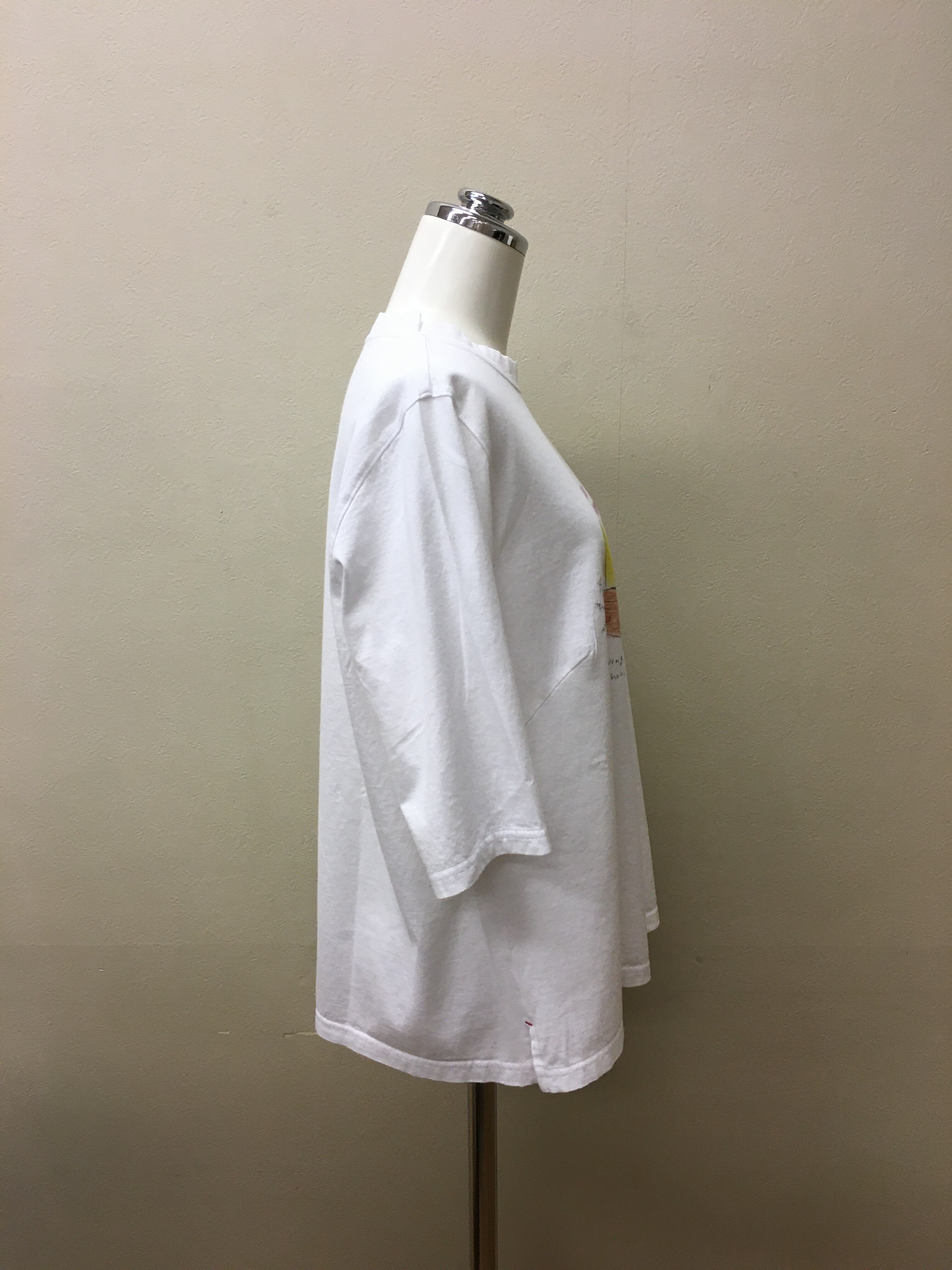 手書きタッチのライオンプリントが愛嬌たっぷりのTシャツ。立衿にダーツ、背面にワンポイントのボタンなど、こだわり満載のカットソーです。