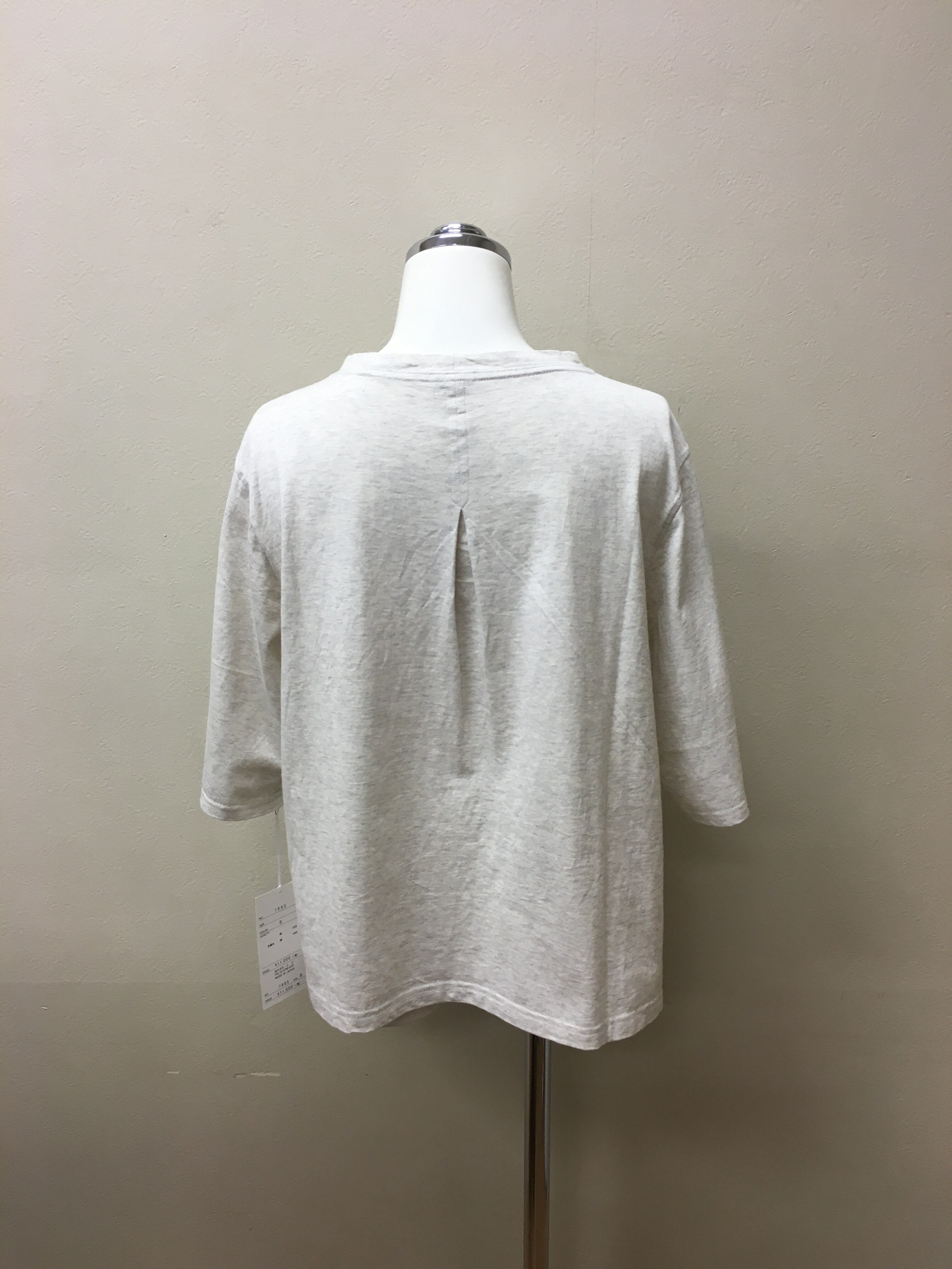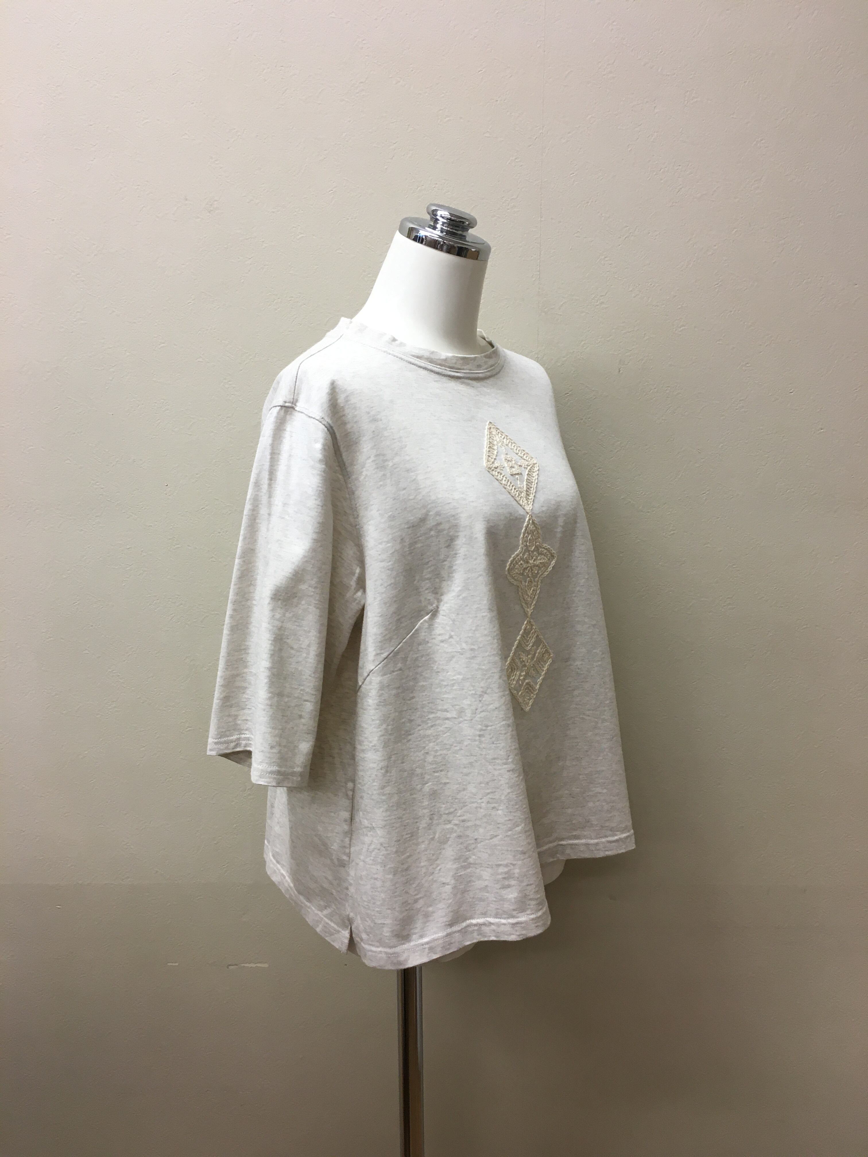 前面の刺繍が印象的なカットソー。衿、背面のタック、ダーツなどディテールにもこだわり着心地を追求してます。シンプルでワンポイントがあるものをお探しの方に。