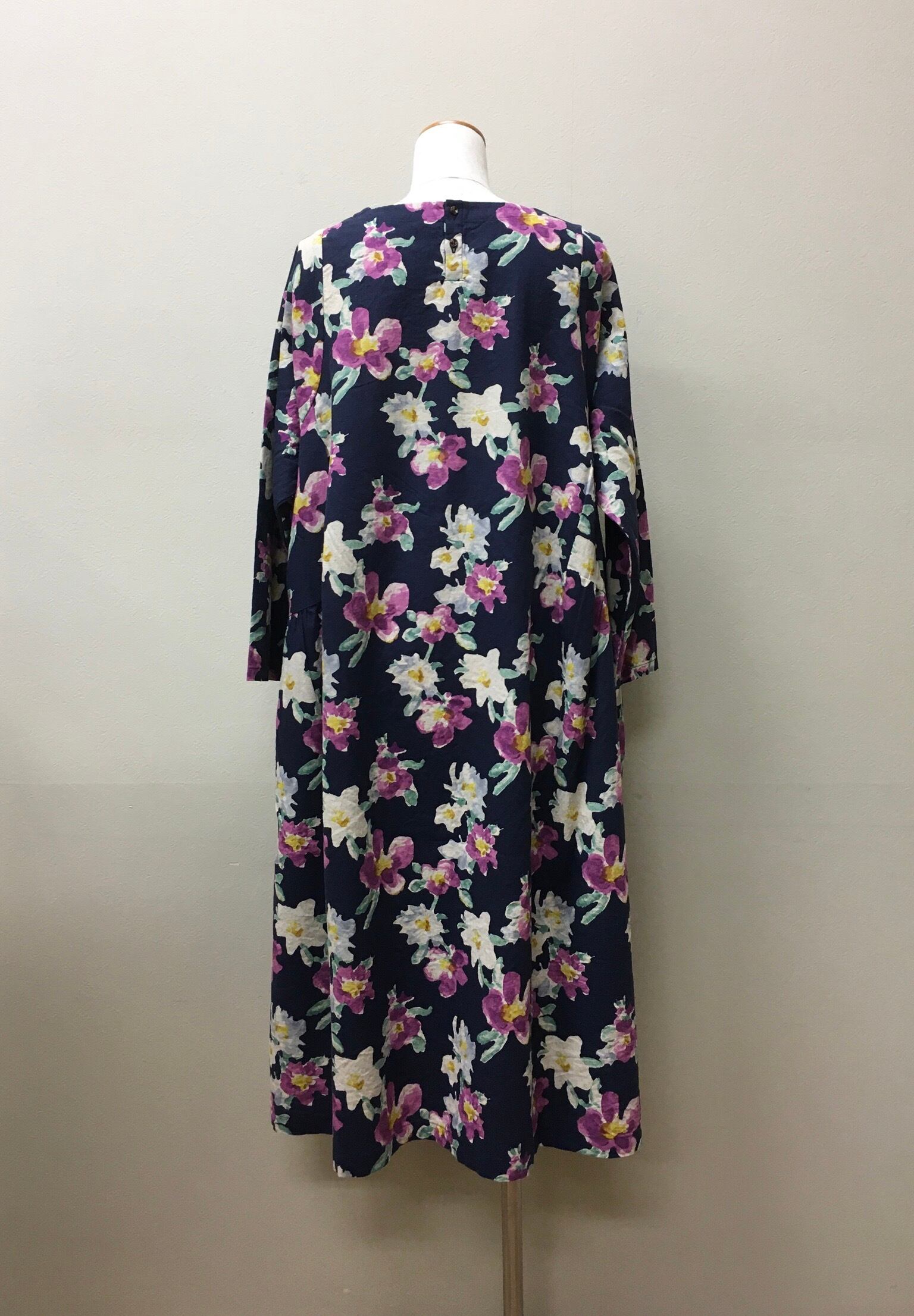 pousse 花柄プリント綿麻ワンピース