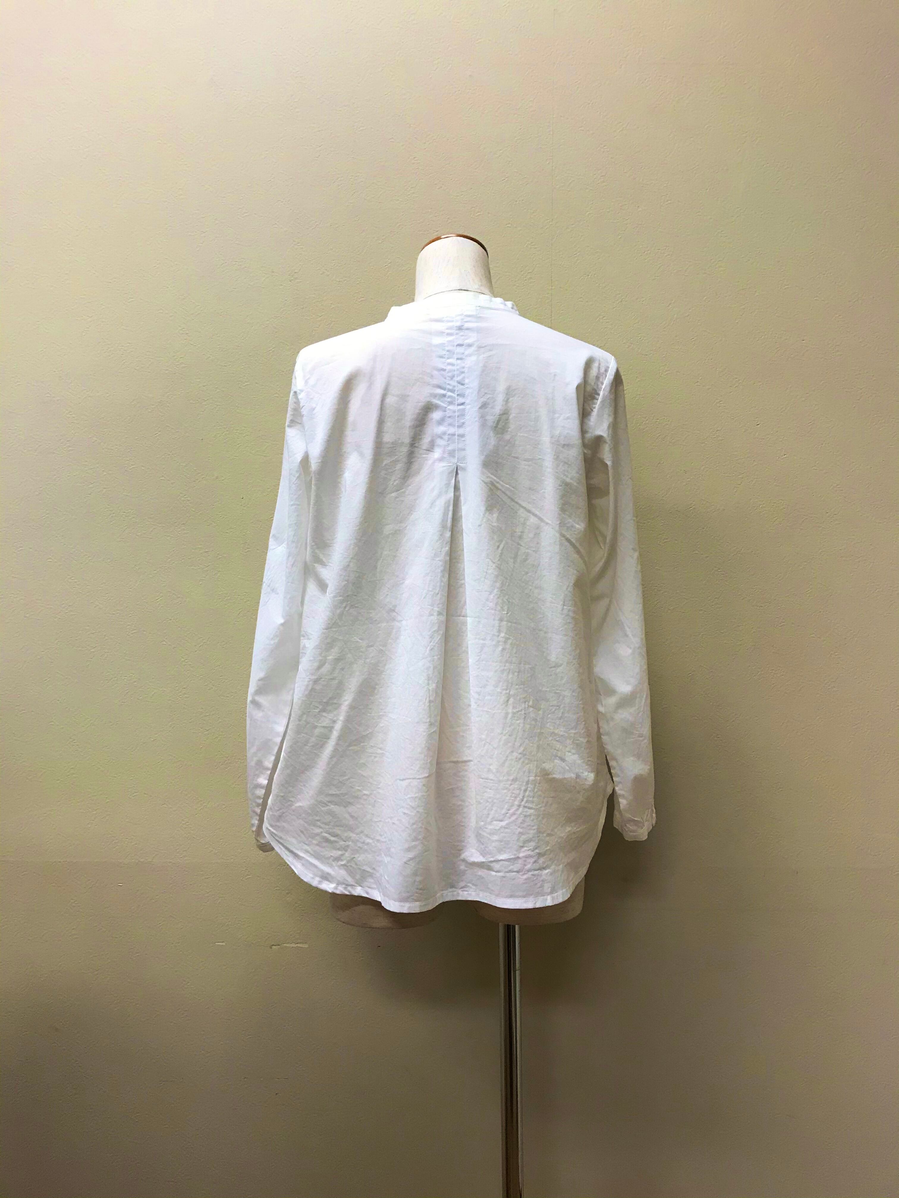 小花柄の繊細な刺繍と無地の綿ローン、配色使いがパキッと新鮮な遊び心のあるデザイン。着ていて楽しく気持ちも明るく元気になれそうなブラウスです。