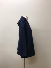 しっかりとした裏毛のパーカーは季節の変わり目にぴったりのアイテム。赤いテープと赤いボタンがアクセントになってます。ポケットのロゴ「smile and spread happiness 」のとおり笑顔が似合うパーカーです♪