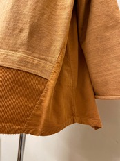 ヴィンテージ感があり風合いの良いムラ糸使いのコットンプルオーバー。裾に太コール、サイドには細コールで生地が切り替えてあり、秋冬ならではの暖かみのある雰囲気が楽しめます。