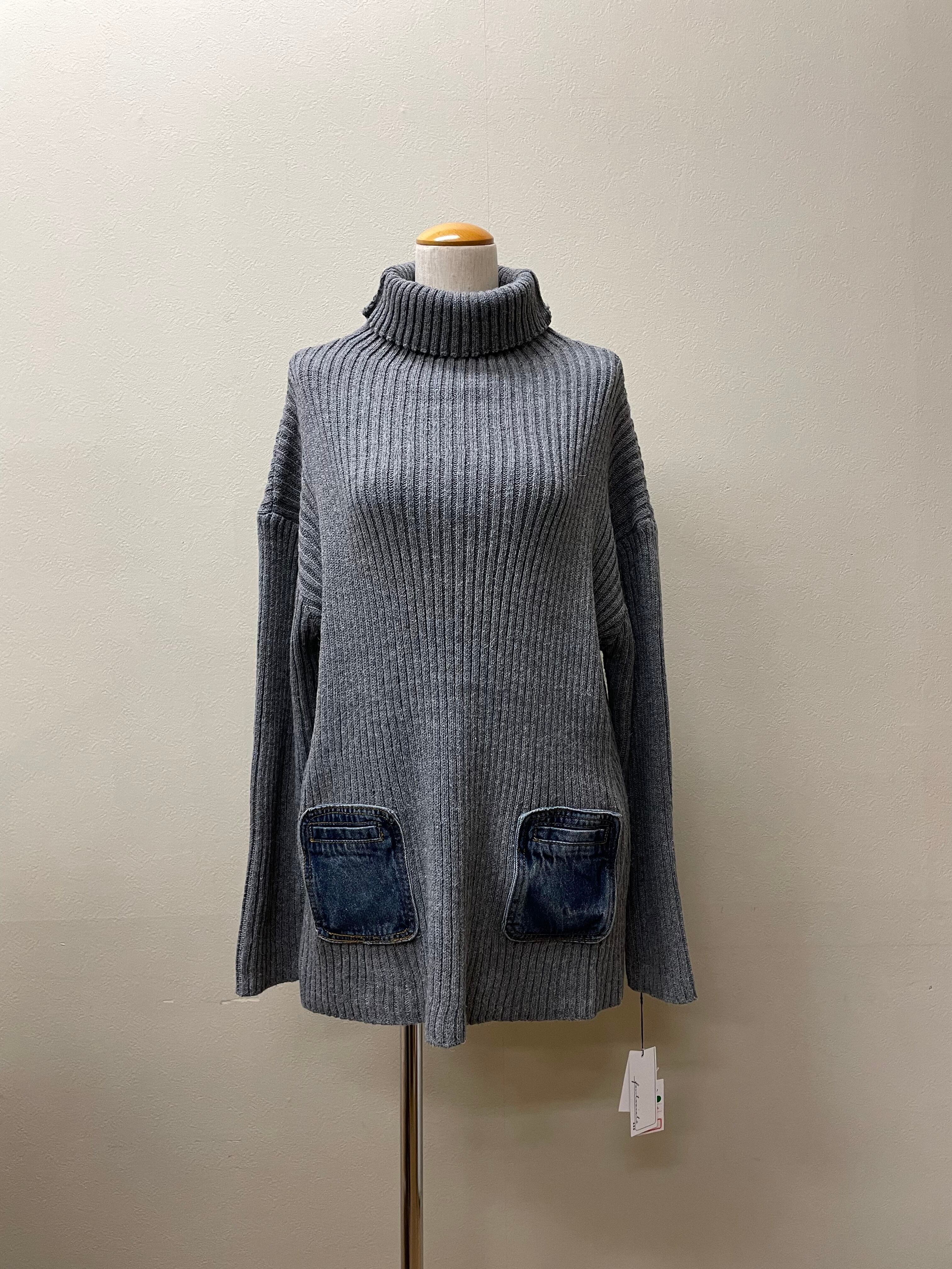 fantasiata ポケットデニムニットチュニック グレー