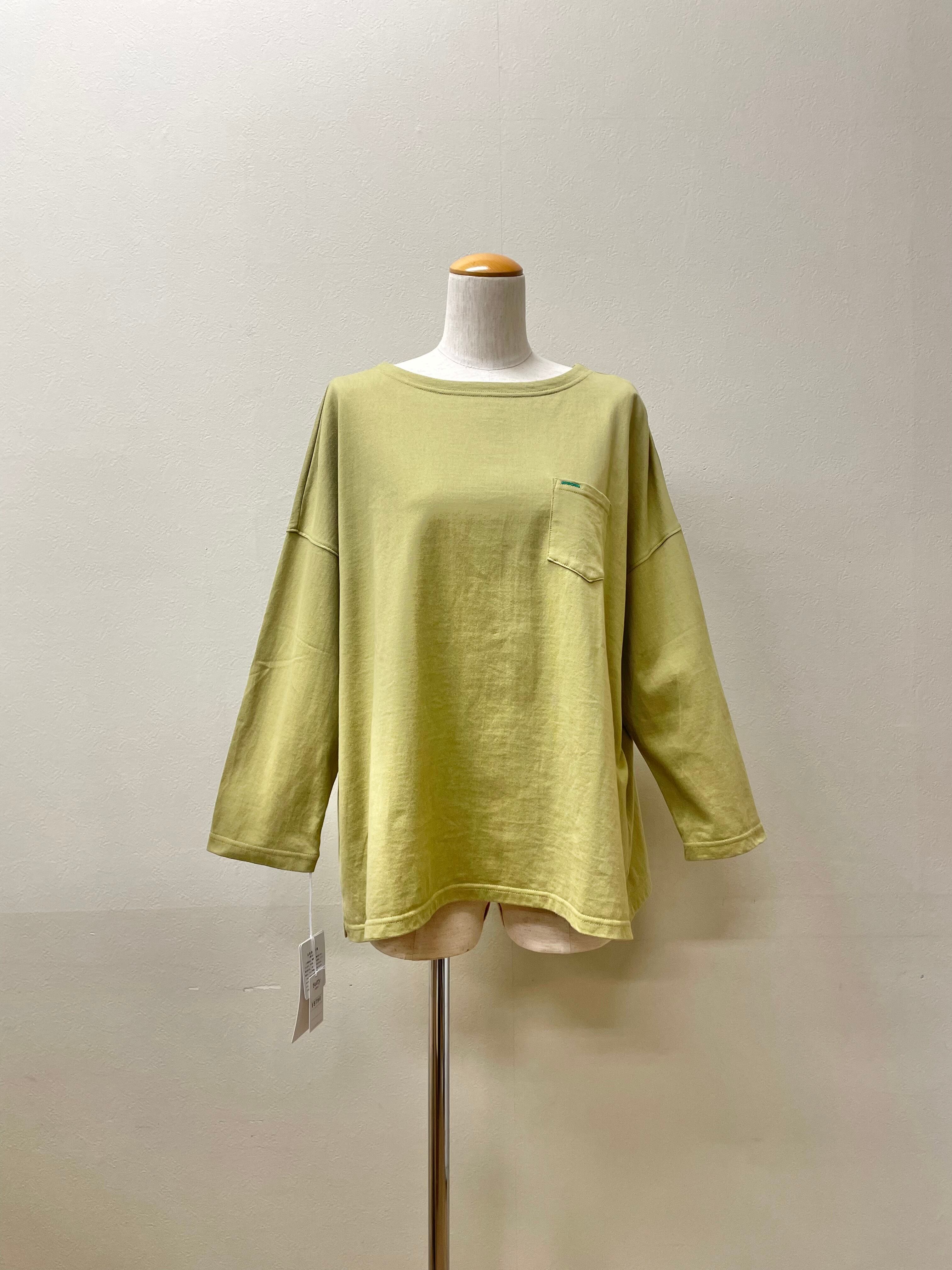 肌触りが良く耐久性も高い40/2クラシック天竺のカットソープルオーバー。左胸のポケットにグリーンの飾りホール、裾脇に配色ピンクカン止めとディティールにもこだわったプルオーバーです。