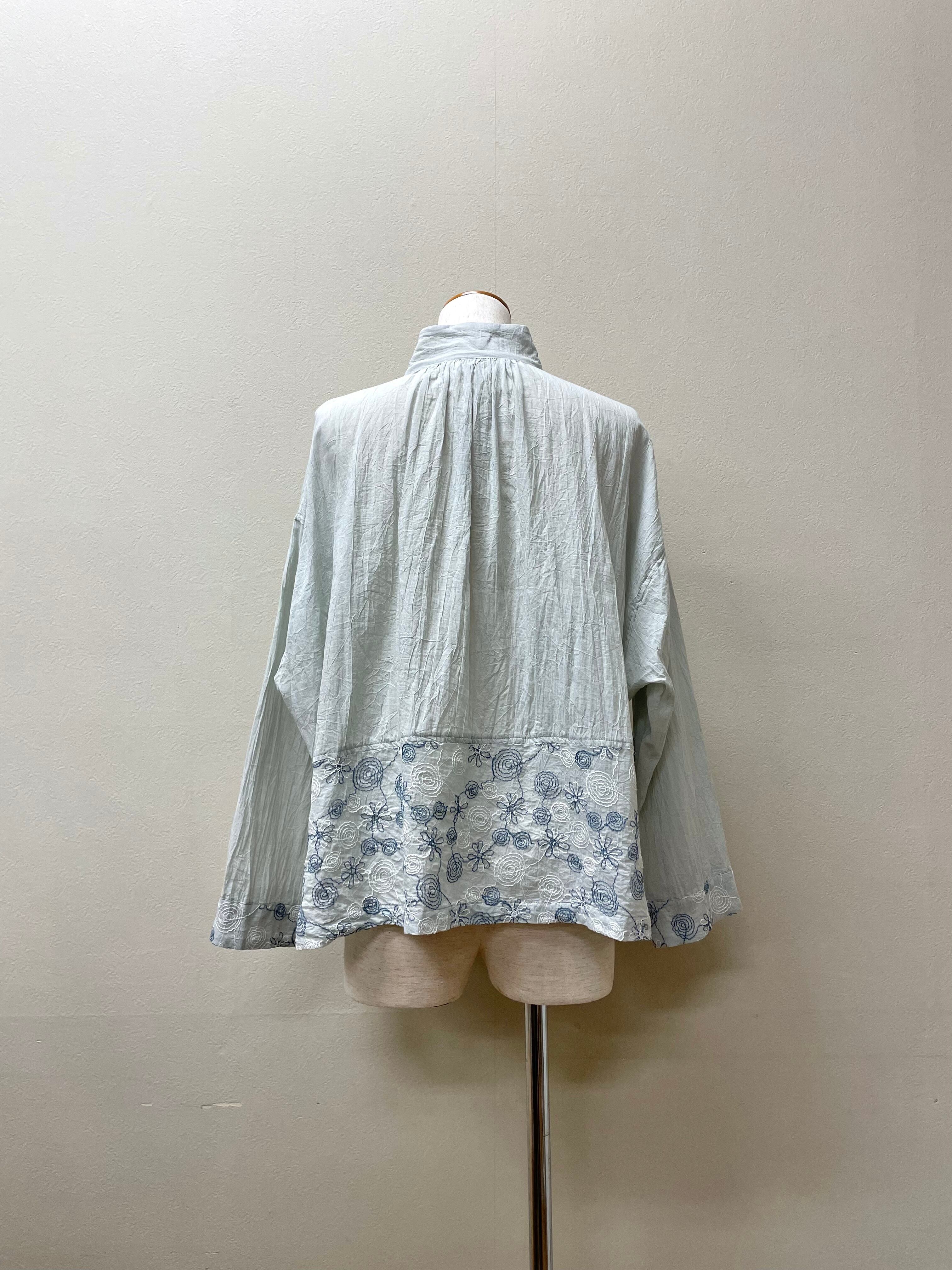 TANAKAのSHIRT 綿レース切り替えギャザーブラウス