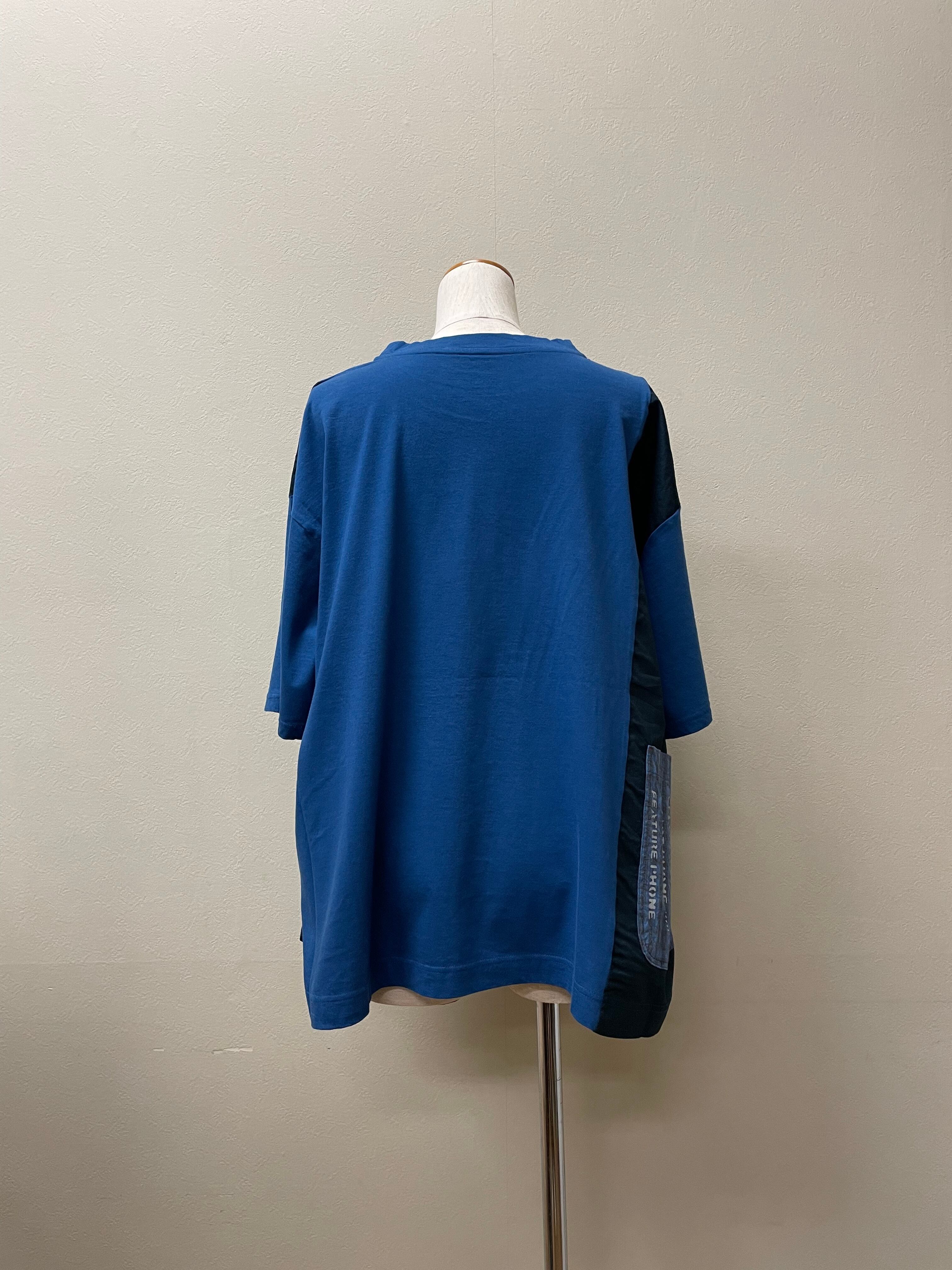キャンブリックやチェック生地を使用した切り替えが特徴的なプルオーバー。便利なだけでなくデザイン上のアクセントになっている右背面の携帯入れが楽しいですね。