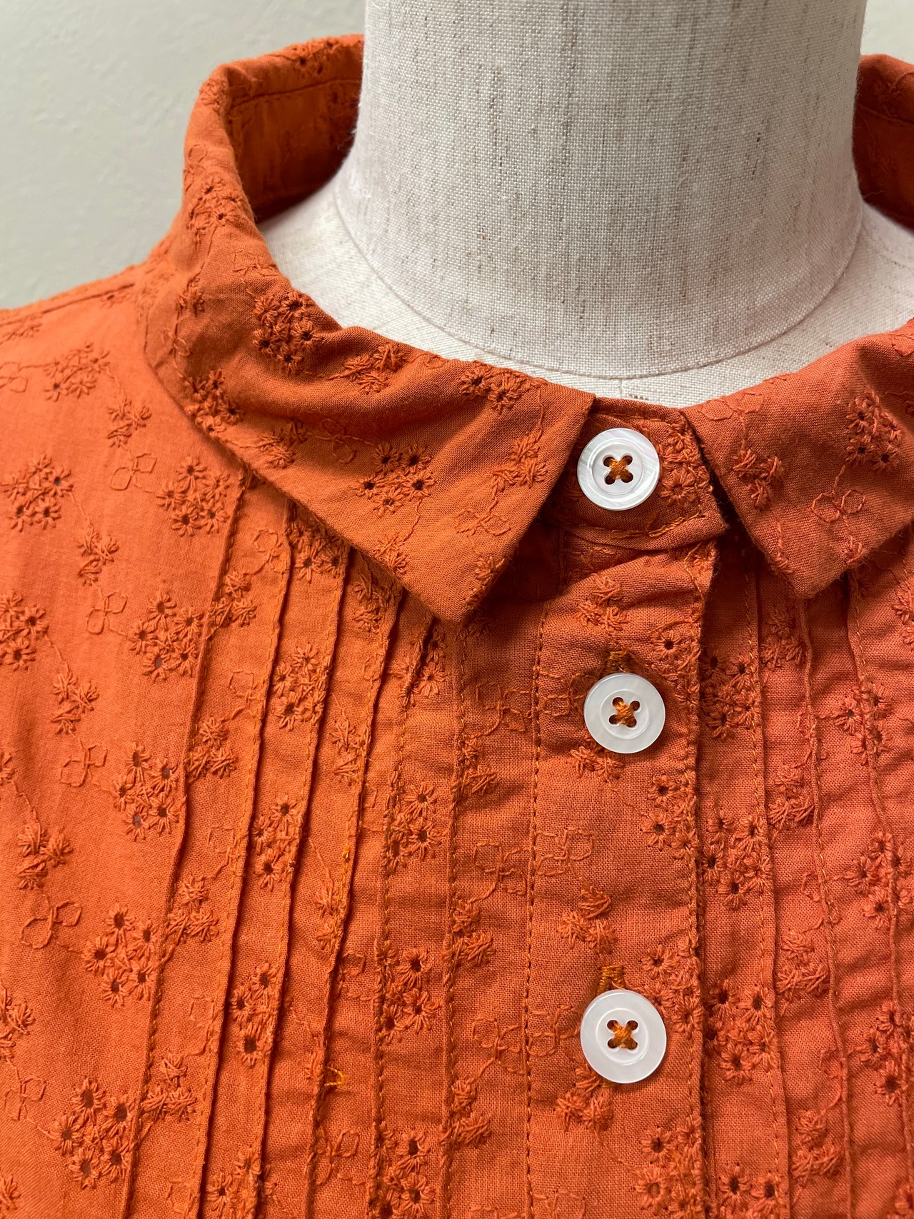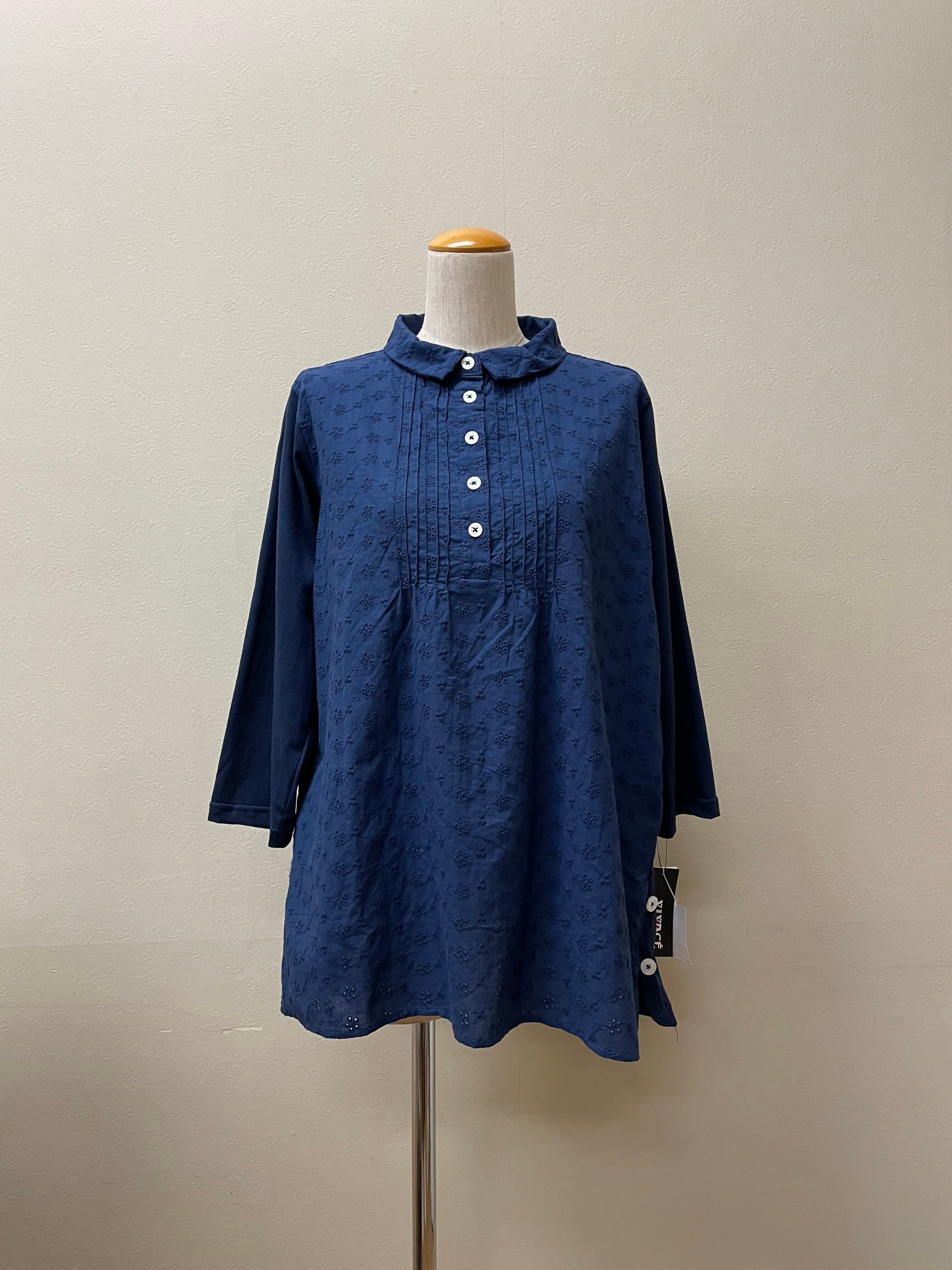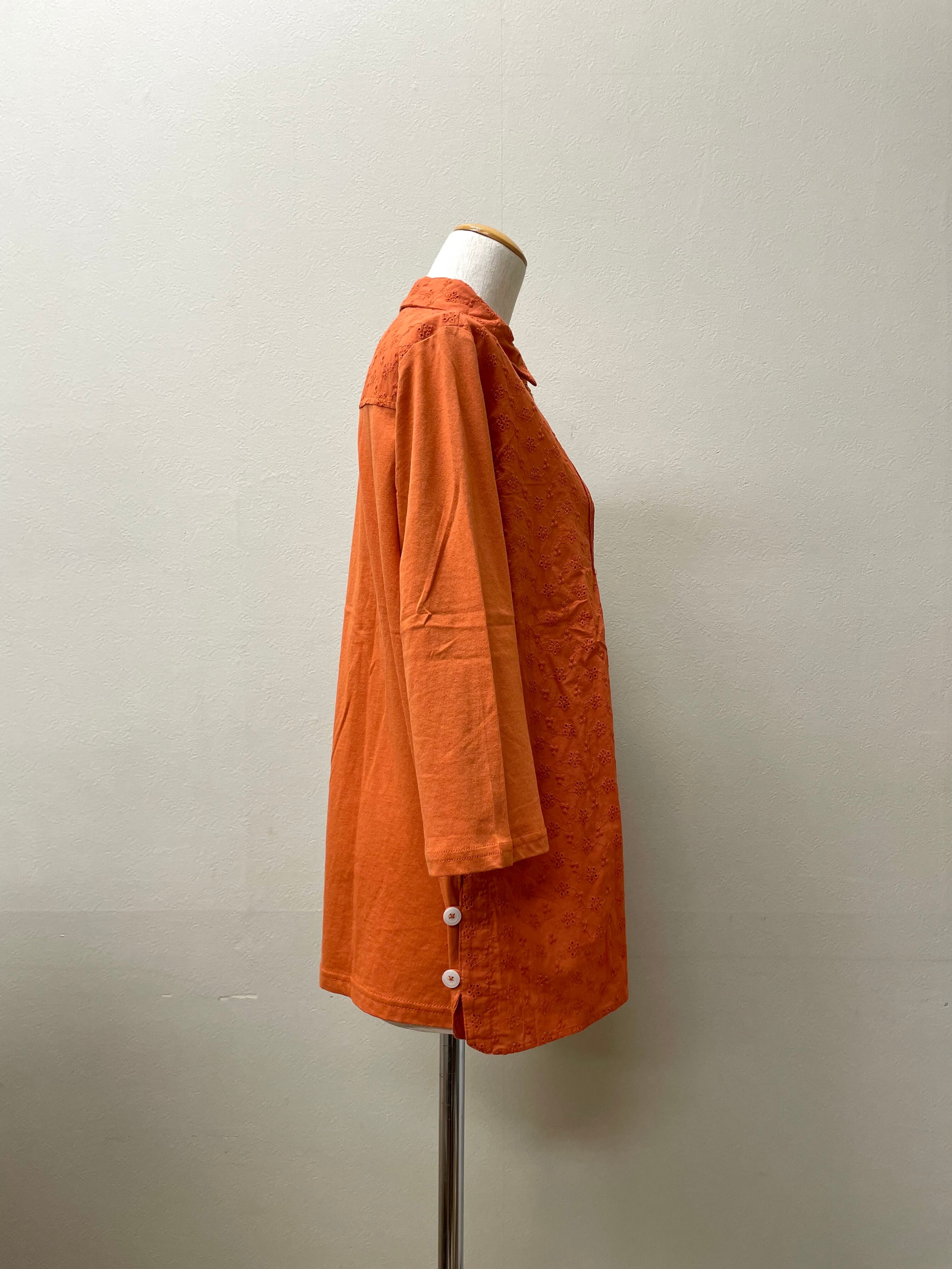 綿100%が嬉しい涼しげなレースのブラウス。背面がTシャツ生地に切り替えてあるので着心地も楽チンです♪