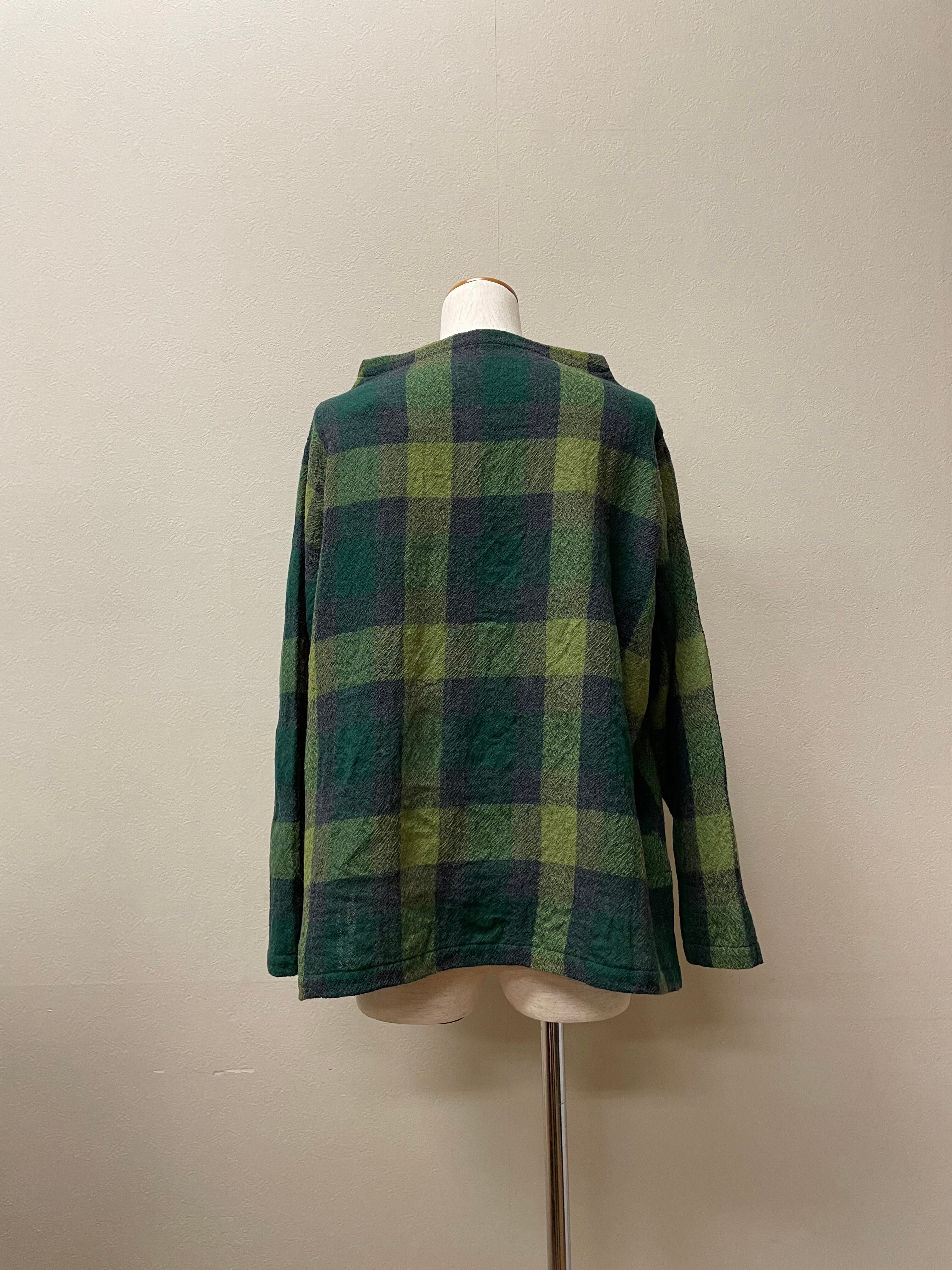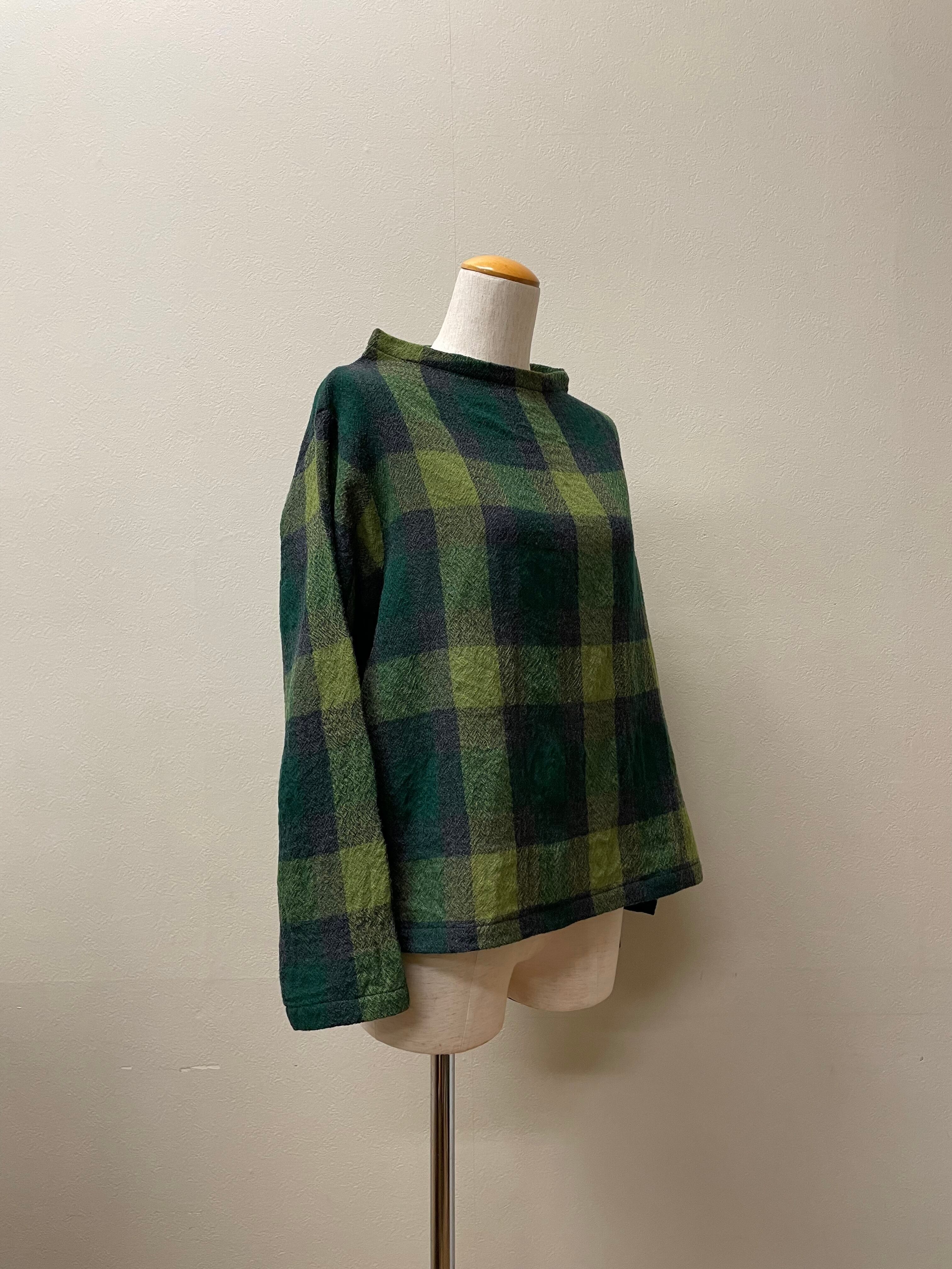#ウールガーゼ #ボトルネック #ブロック柄 #格子柄 #プルオーバー #ブラウス #毛100%