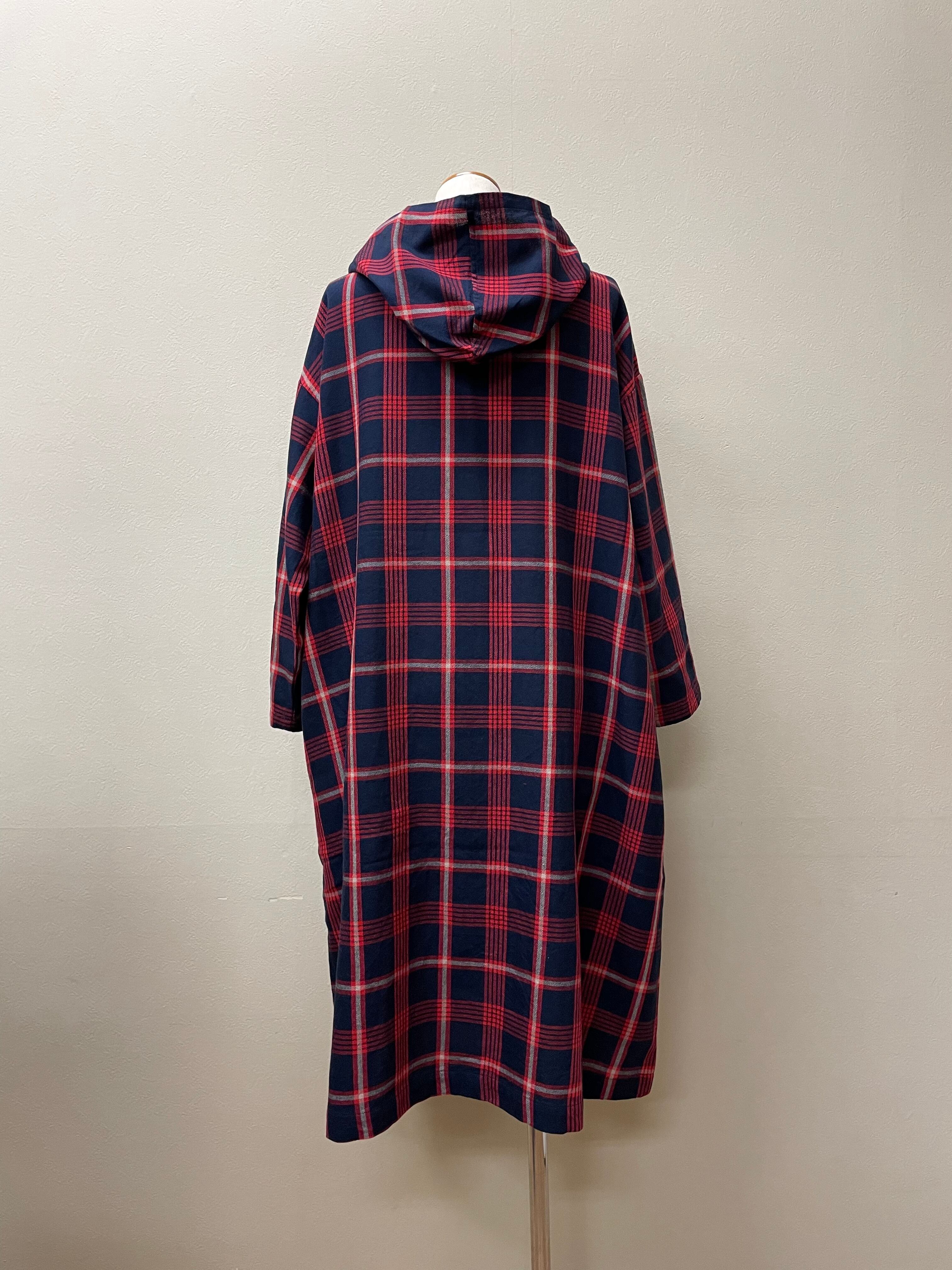 pousse 綿ウールフード付きチェックワンピース