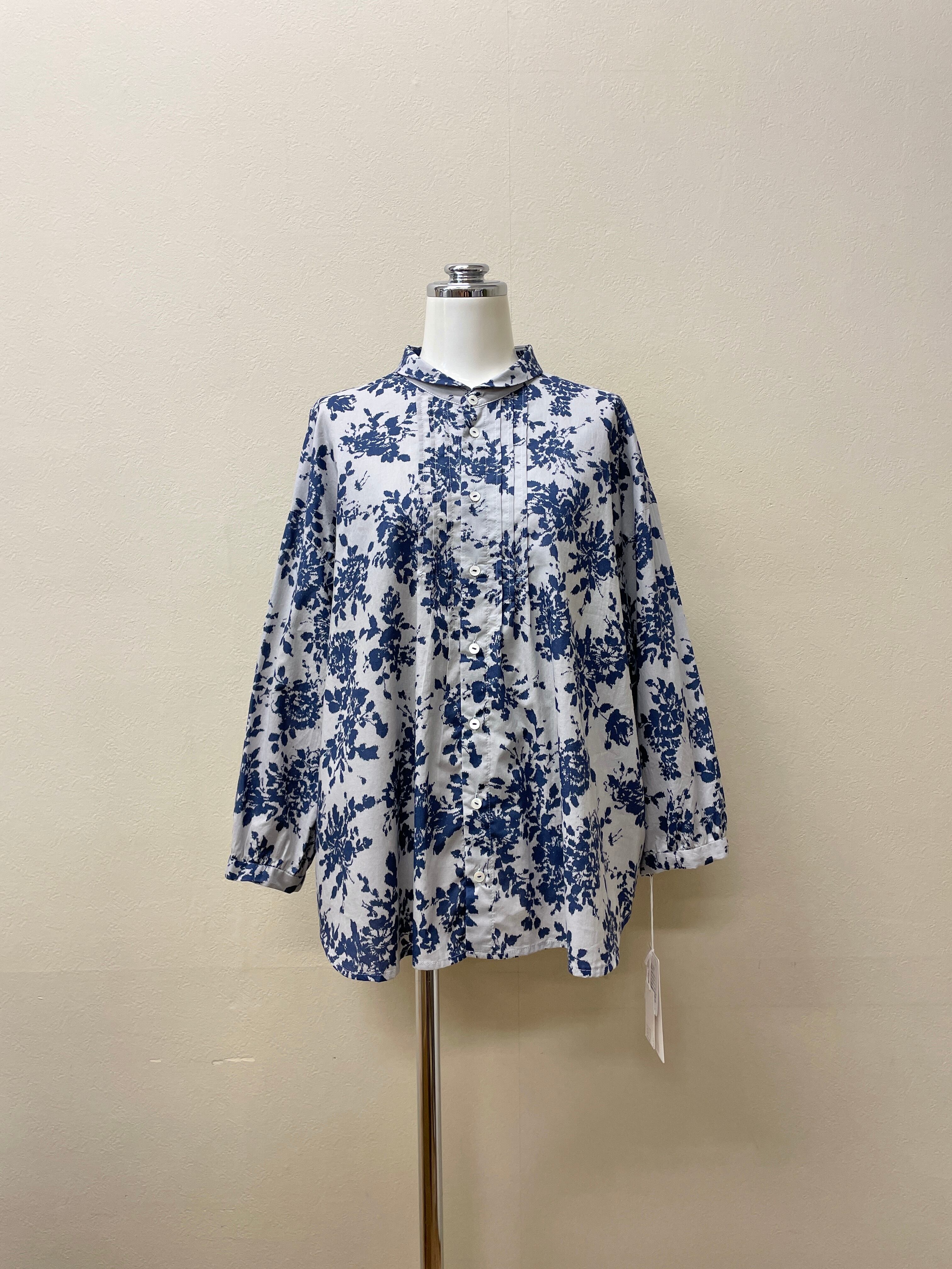 綿ローン素材を使用し、さらりとした肌触りで着心地も抜群。花柄プリントが女性らしさを引き立て、ゆったりとしたシルエットで着やすさも追求しました。細いショールカラーやピンタックが施されたデザインは、程よいアクセントになります。さらに、CO'sオリジナルの生地を使用しているため、他ではなかなか見つけられない一枚となっています。